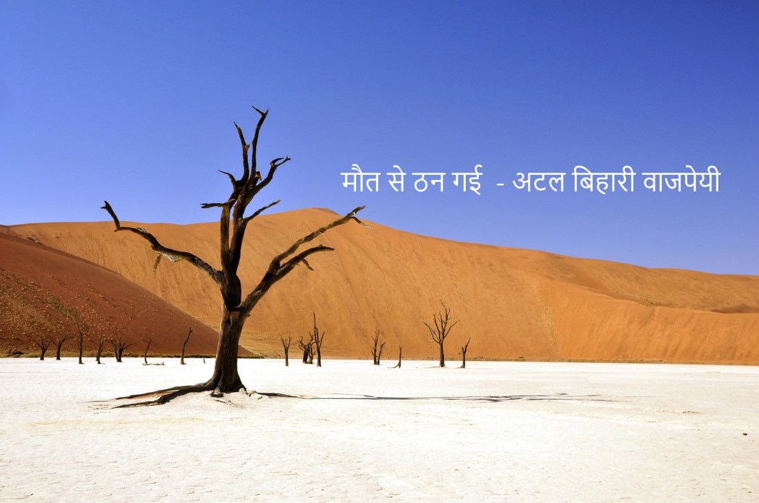ठन गई! मौत से ठन गई! जूझने का मेरा इरादा न था, मोड़ पर मिलेंगे इसका वादा न था, रास्ता रोक कर वह खड़ी हो गई, यों लगा ज़िन्दगी से बड़ी हो गई।